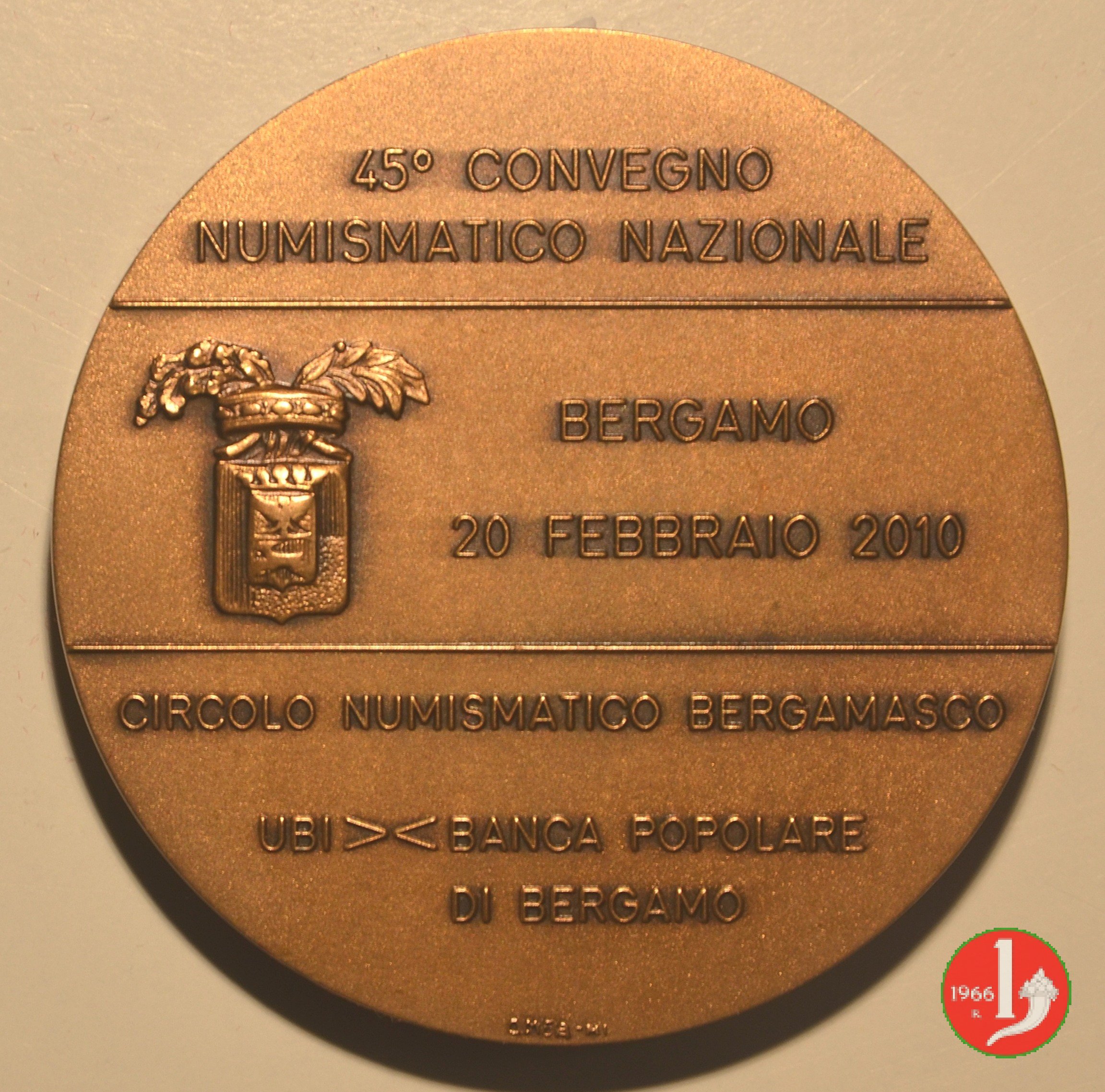 | Medaglia coniata, realizzata nel 2010 dalla Ditta OMEA di Milano per il Cirdolo Numismatico Bergamasco, a ricordo del quaracinquesimo Convegno Numismatico di Bergamo. | ||||||