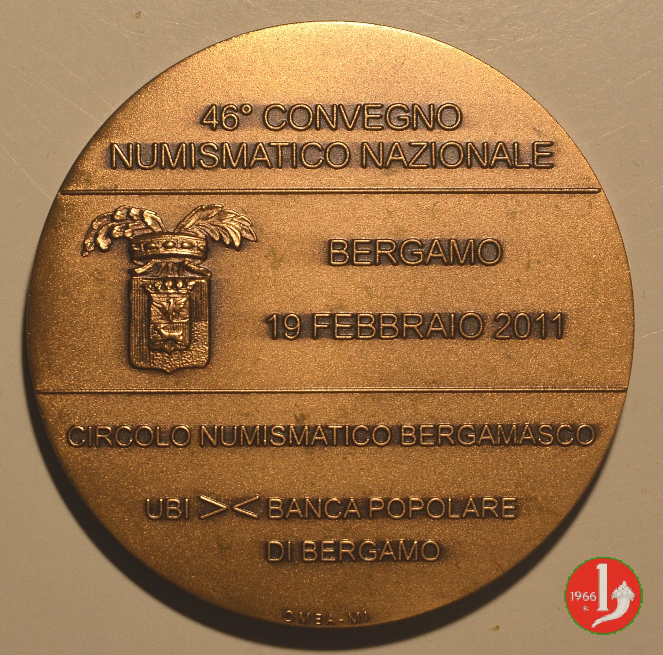 | Medaglia coniata, realizzata nel 2011 a ricordo del quarantaseiesimo Convegno Numismatico di Bergamo. | ||||||