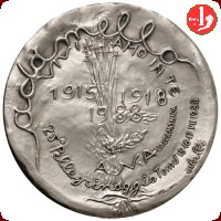Medaglia coniata realizzata nel 1984 dall'Associazione Nazionale Alpini della Valcamonica a ricordo del 25' pellegrinaggio all'Adamello nell'anniversario della fine della prima guerra mondiale. Contestualmente al pellegrinaggio vi fu la visita a sorpresa del Santo Padre Giovanni Paolo II e del presidente della Repubblica Sandro Pertini con la celebrazione della messa in quota.