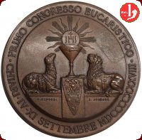 Medaglia coniata, realizzata nel 1938 dallo Stabilimento Stefano Johnson di Milano, per ricordare il primo Congresso Eucaristico a Chiari (BS).