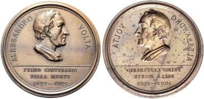 | 100° della morte di Alessandro Volta - Uniface 1927 (Medaglia) | ||||||||||||