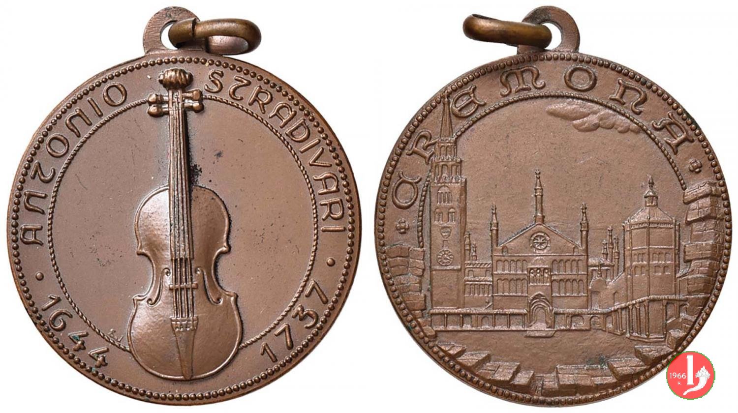 | Medaglia coniata senza data, ma probabilmente realizzata nel 1944 a ricordo del trecentesimo della nascita di Antonio Stradivari. | |||||