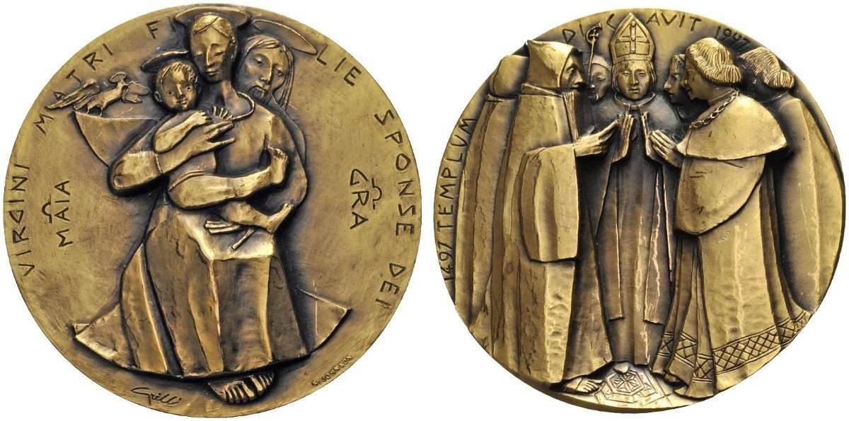 | Medaglia coniata, realizzata nel 1997 a ricordo del quinto centenario della dedicazione della chiesa della Certosa di Pavia. | ||||||||