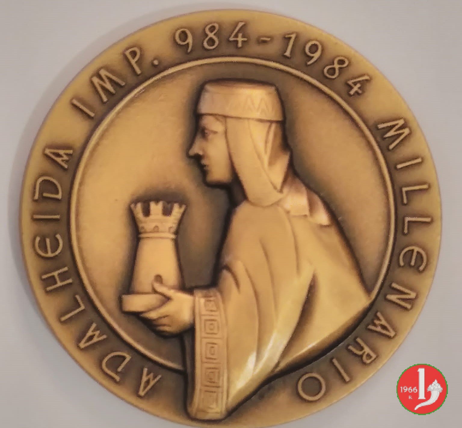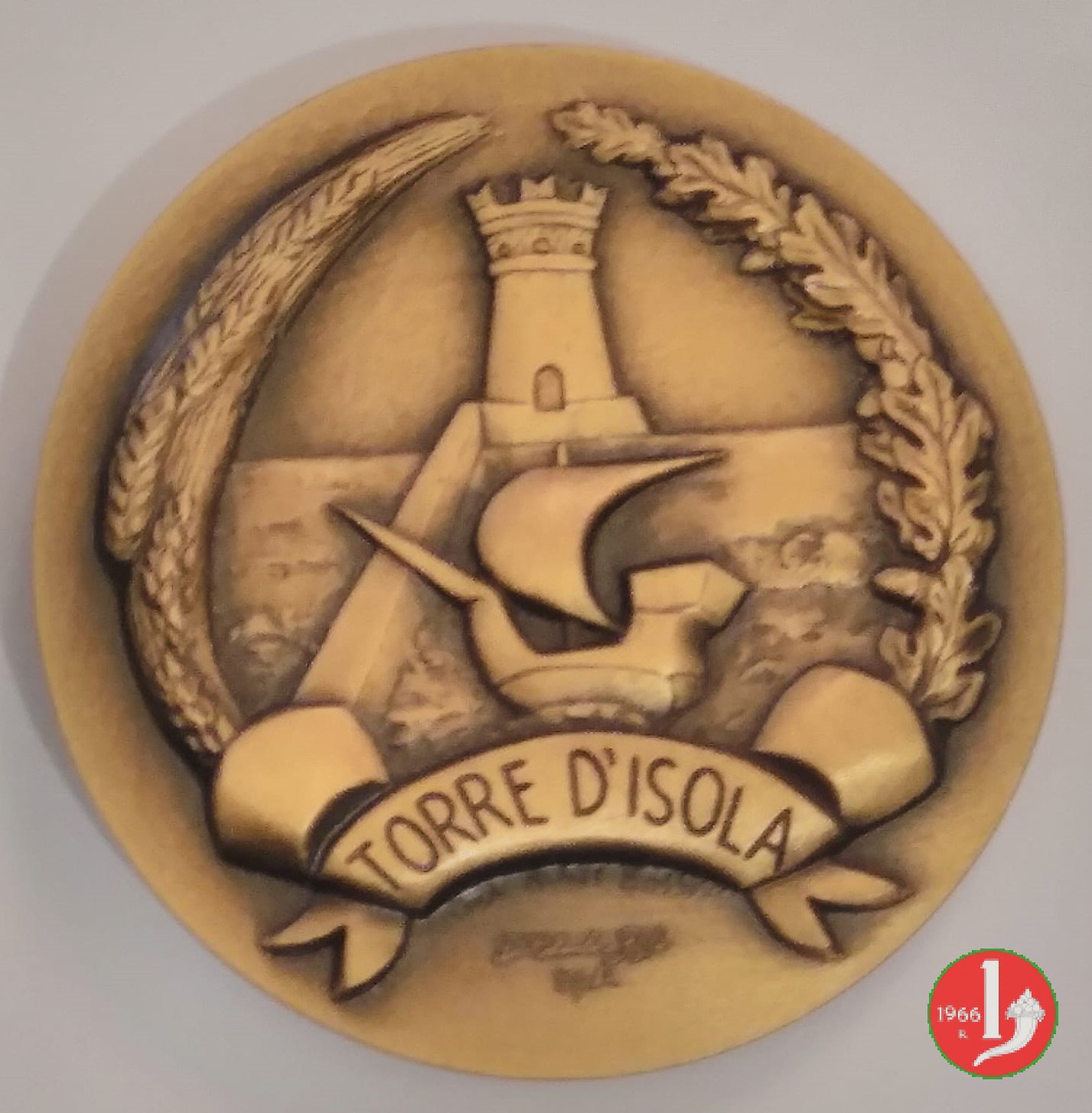 Logo stilizzato del Comune tra rami d' alloro e quercia, su nastro contenente: TORRE ISOLA ADALHEIDA IMP. 984-1984 MILLENARIO