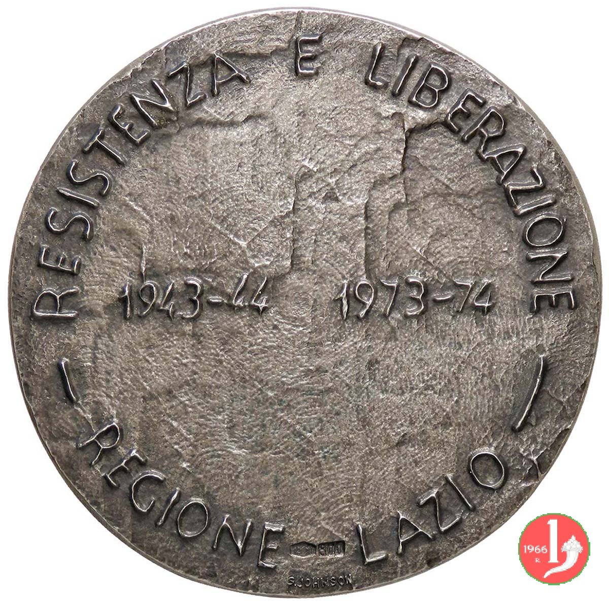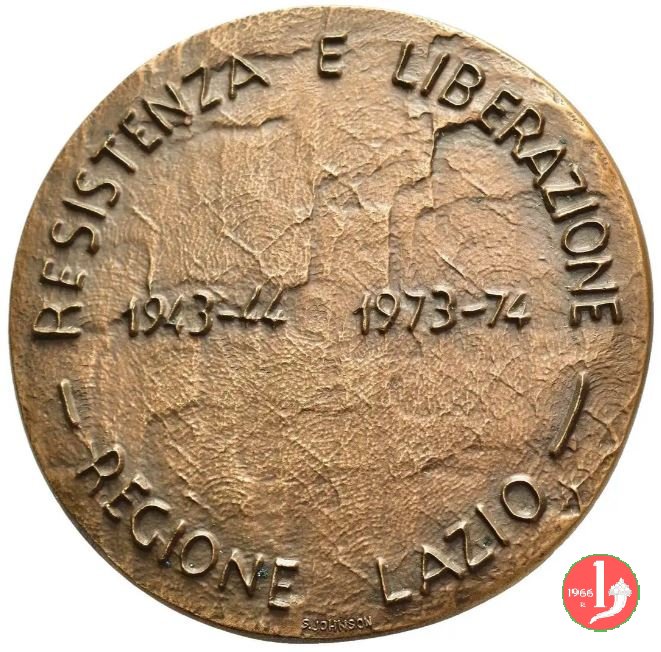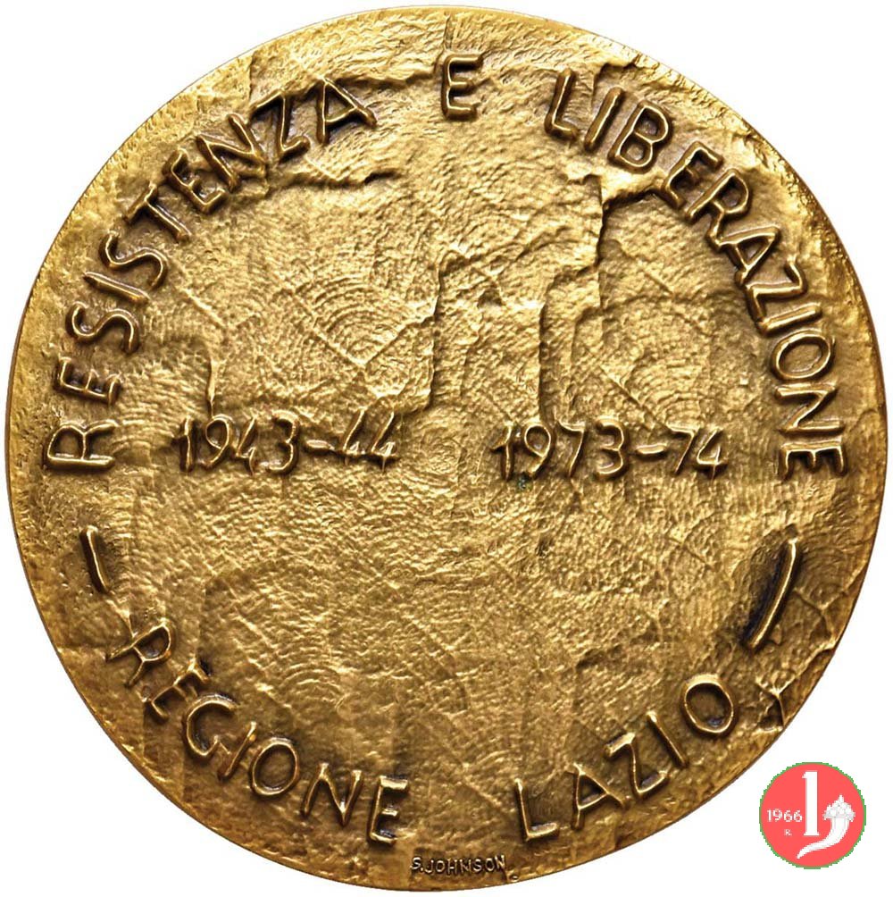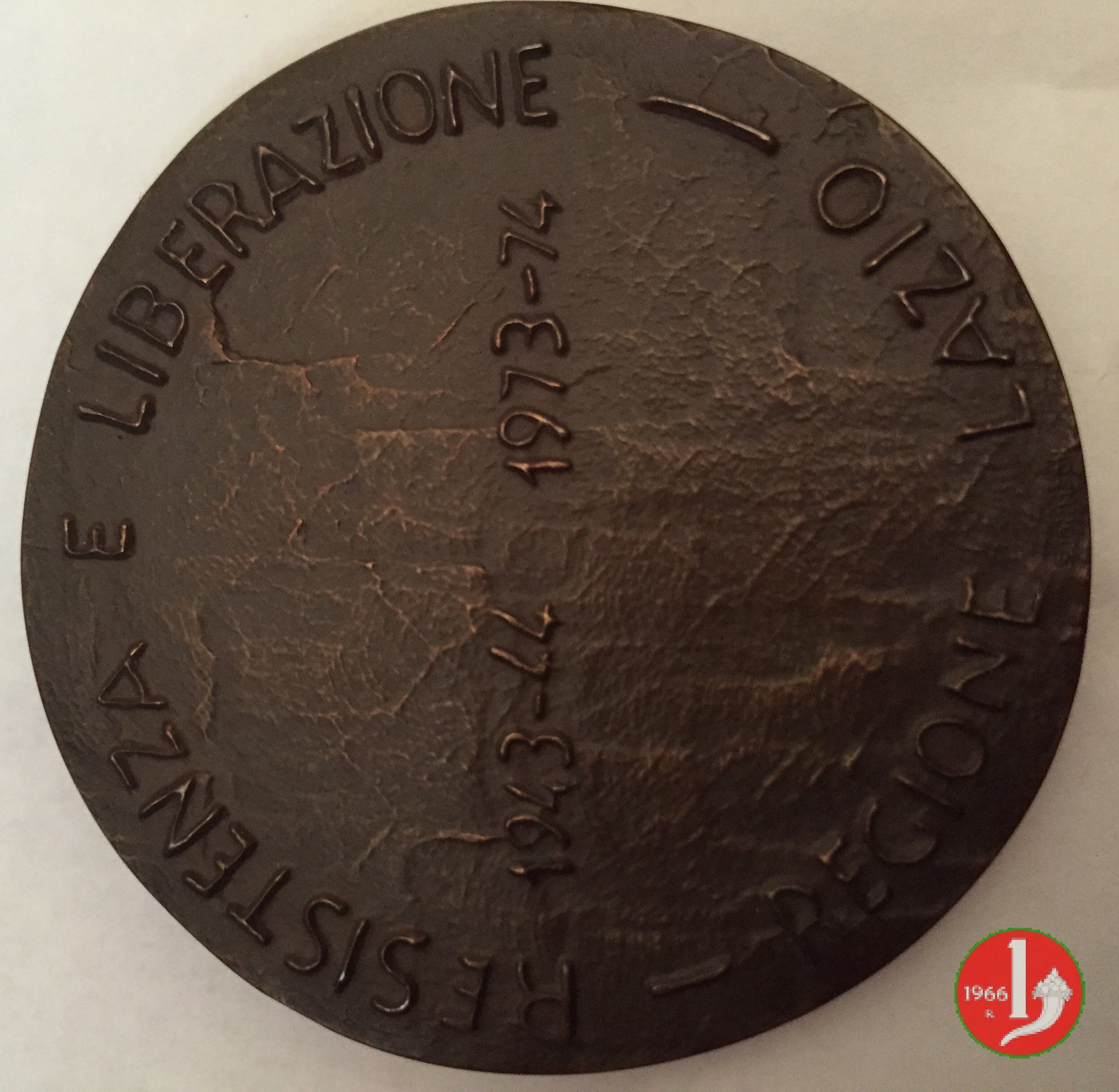 | Medaglia coniata, realizzata nel 1974, con fondo opaco o satinato, dallo Stabilimento Stefano Johnson di Milano per la Regione Lazio, a celebrazione della Liberazione. | ||||||