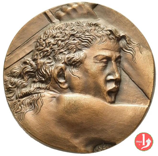 Medaglia coniata, realizzata nel 1974, con fondo opaco o satinato, dallo Stabilimento Stefano Johnson di Milano per la Regione Lazio, a celebrazione della Liberazione.
