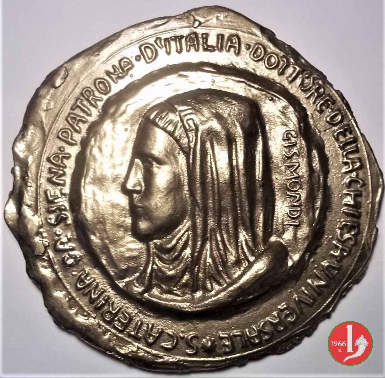 Medaglia fusa senza data, realizzata per il Centro Nazionale di Studi Cateriniani che fu fondato a Roma nel 1940 da Mario Felice Bianchi (1885-1966) pubblicista e animatore di numerose iniziative cateriniane a cui è dedicato il premio.