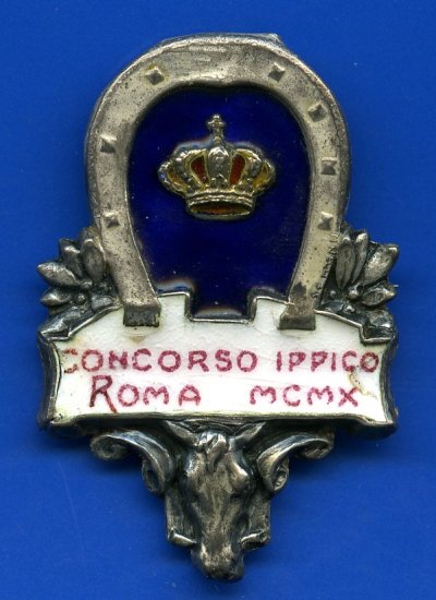 sotto entro targa sorretta da testa di cavallo tra volute: CONCORSO IPPICO = ROMA MCMX