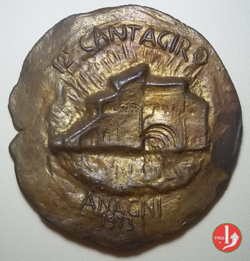 | Medaglia fusa, realizzata nel 1973 a ricordo della tappa del 12° Cantagiro ad Anagni. | ||||||