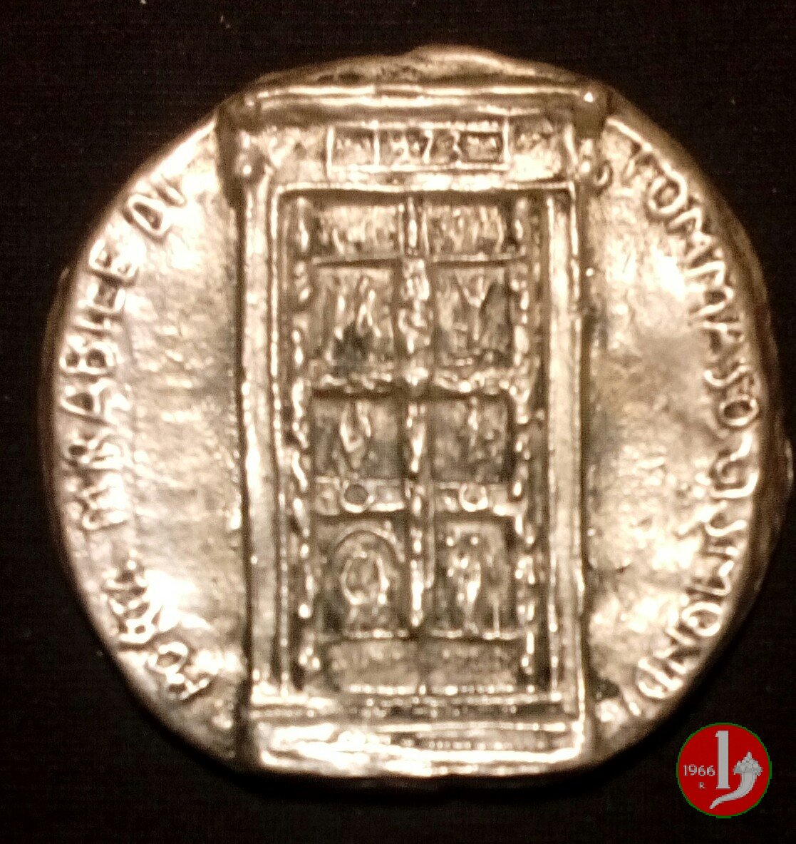 Medaglia fusa, realizzata nel 1973 per ricordare la realizzazione del Portale d'ingresso principale alla Chiesa Collegiata di Santa Maria della Valle in Monte San Giovanni Campano.