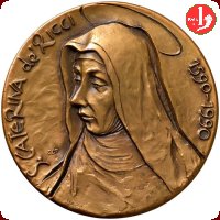 | Medaglia coniata realizzata nel 1990 a ricordo del quarto centenario della morte di Santa Caterina de Ricci. | |||||