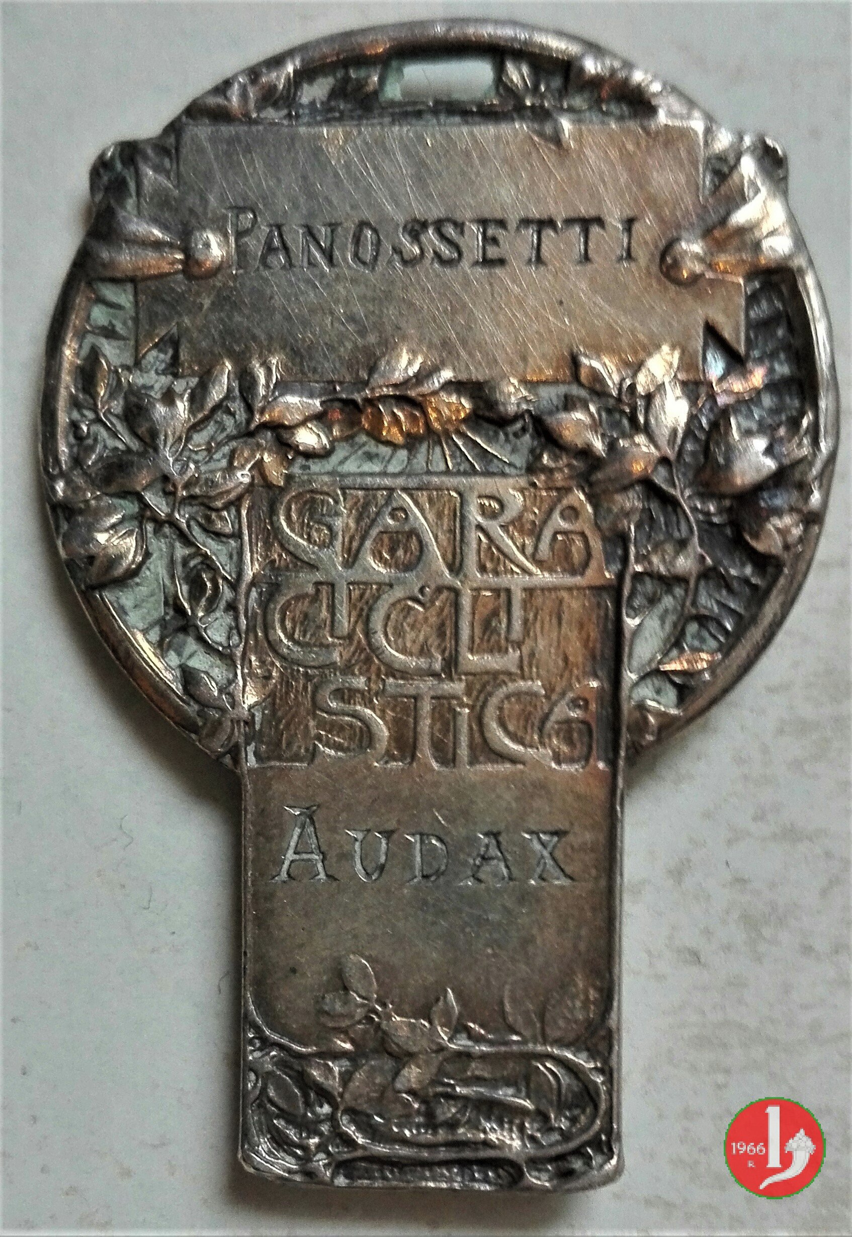Medaglia premio coniata di forma irregolare, realizzata nei primi anni del XX secolo per la Gara Ciclistica Audax, nata in Italia nel 1897 ad indicare l'audacia (in latino) dei partecipanti impegnati a percorrere centinaia di chilometri in bicicletta.