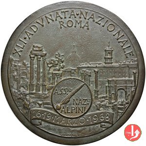 | Medaglia coniata o fusa, realizzata nel 1968 a ricordo della quarantunesima Adunata Nazionale degli Alpini a Roma, in concomitanza con il cinquantesimo anniversario della Vittoria. | |||||
