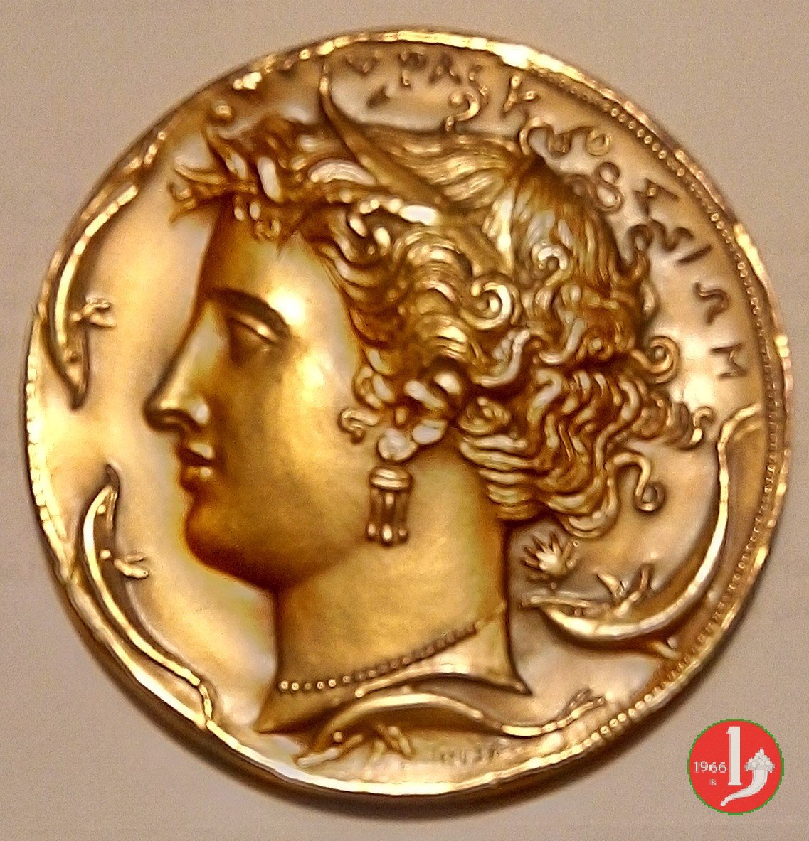 Medaglia uniface, riproduzione del dritto del decagramma di Siracusa.