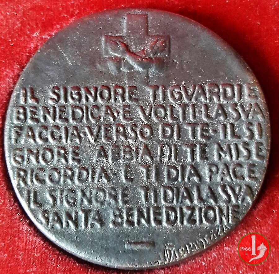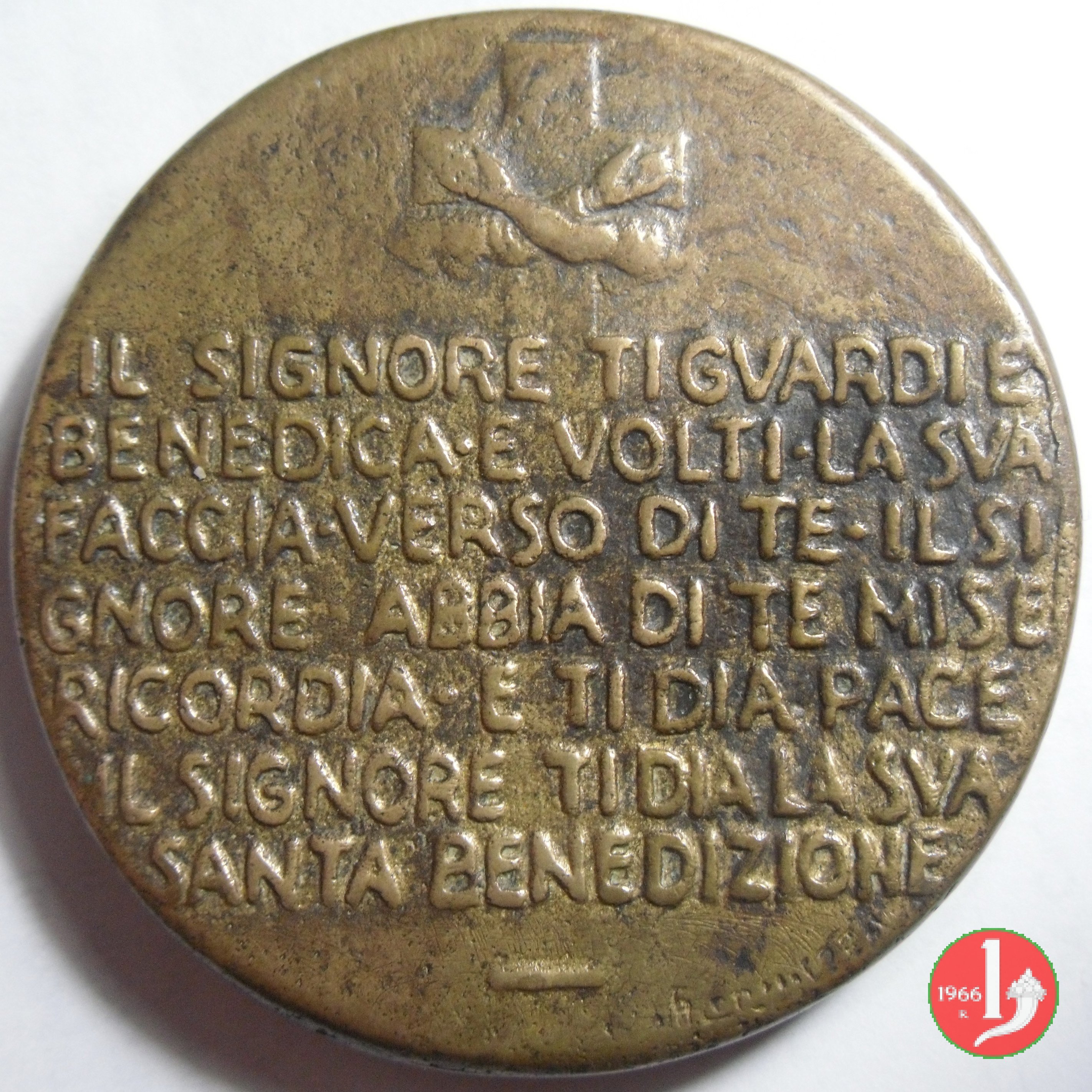 Medaglia fusa, probabilmente realizzata nel 1920 a ricordo del settimo centenario del miracolo di Gubbio. Al Verso presenta la Benedizione di San Francesco.