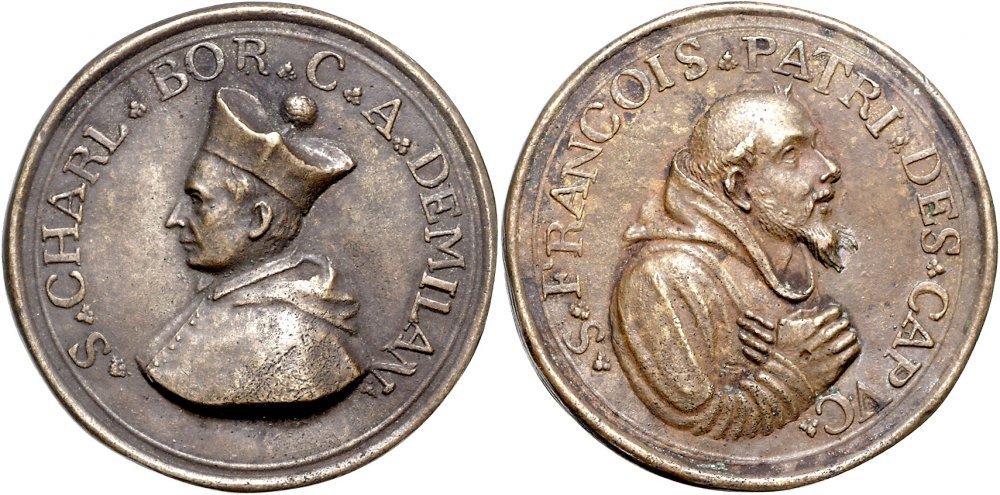 | Medaglia fusa senza data, probabilmente realizzata nel 1610 per ricordare la Canonizzazione di San Carlo Borromeo. | |||||||||||