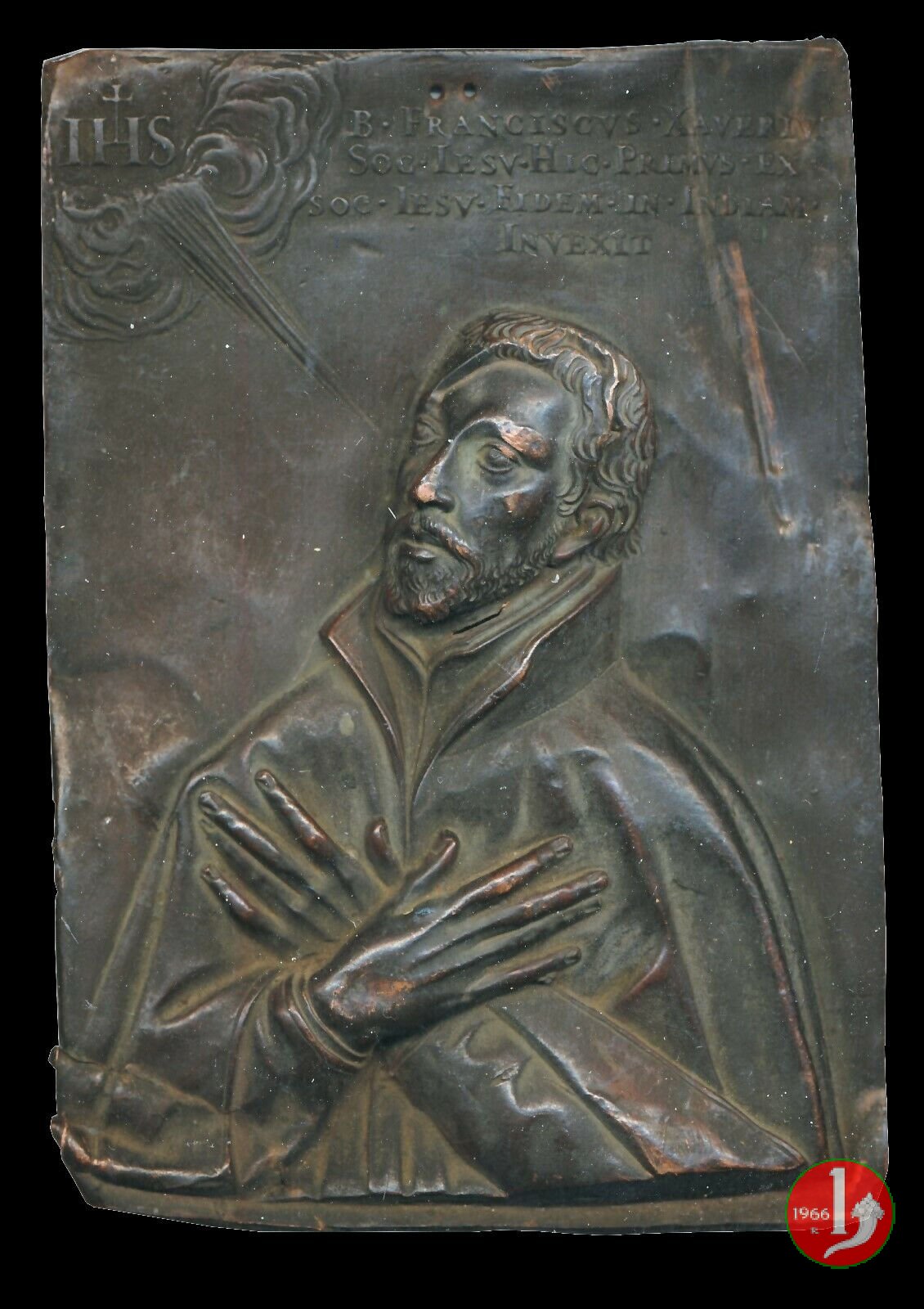 | Placchetta rettangolare fusa senza data, realizzata probabilmente in occasione della Beatificazione di Francesco Saverio nel 1619. | ||||