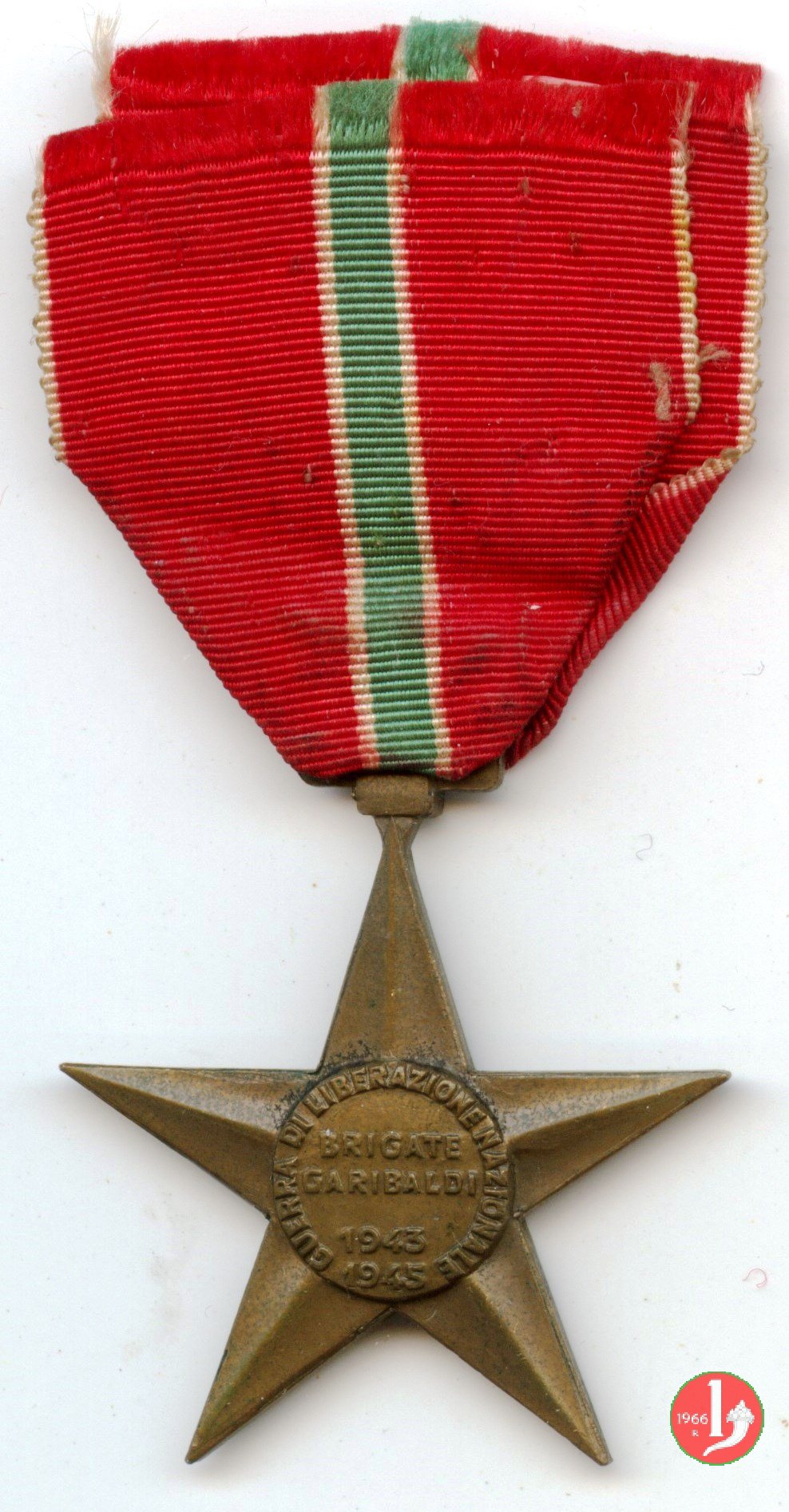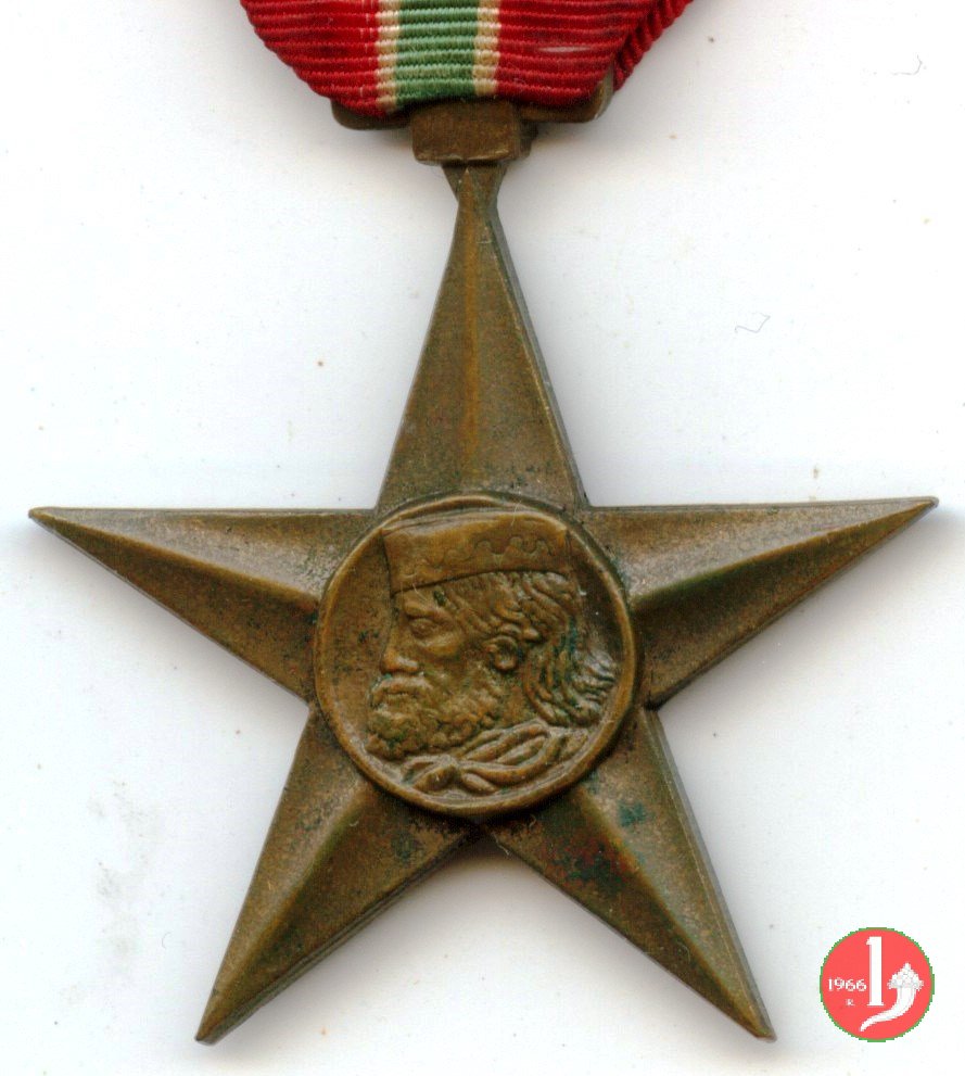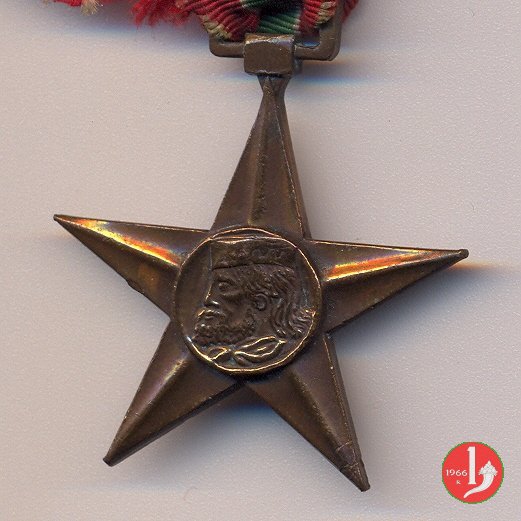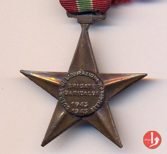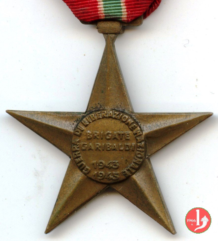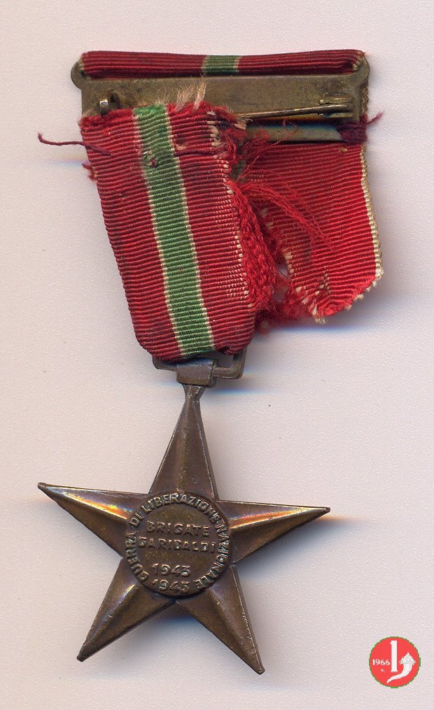 Stella a 5 punte con attacaglia e nastrino. Bibliografia: Medaglie e pagine di storia sulla lotta di liberazione in Emilia Romagna. Ricerca condotta dal C.I.F.R. a cura di Luigi Arbizzani.
