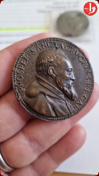 Medaglia fusa, realizzata per il Cardinale Prospero Santacroce (1514-1589), attribuita da Armand all'opera di Federico Cocciola. | ||||