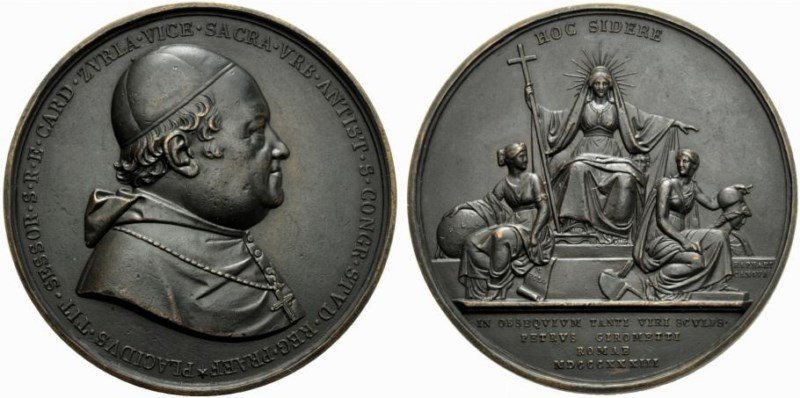 | Medaglia coniata, realizzata nel 1833, a ricordo di Giacinto Placido Zurla (Legnago 02-04-1769 Palermo 29-10-1834) cardinale Vicario di Roma dal 1824 alla morte. | ||||