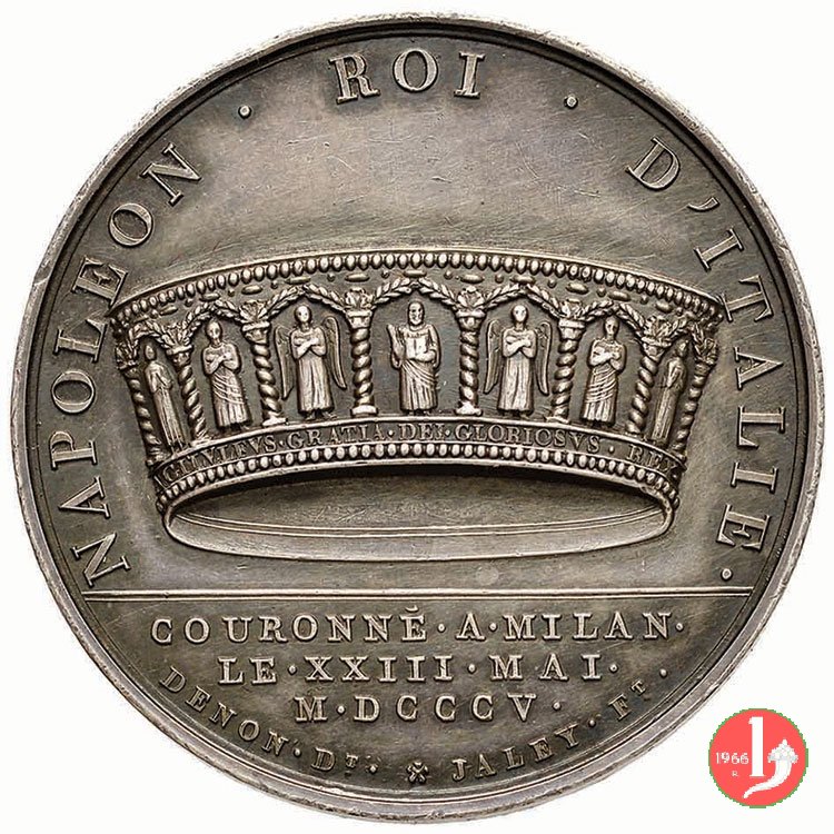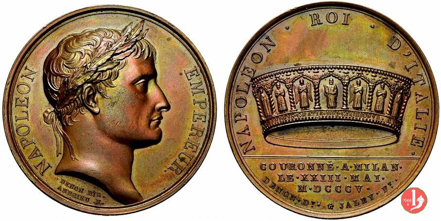 | Medaglia coniata, emessa il 23-05-1805 a ricordo dell'Incoronazione di Napoleone a Re d'Italia a Milano. | |||||||