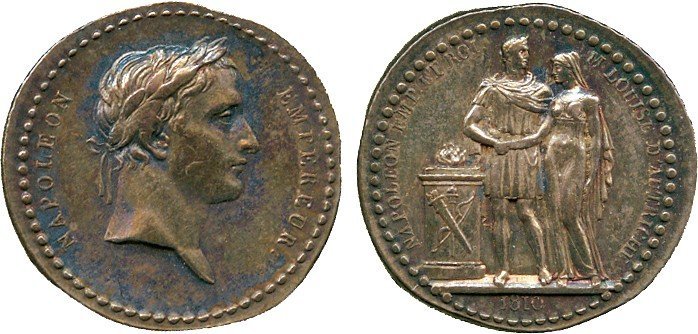| Medaglia coniata, emessa il 11-02-1810 per ricordare il matrimonio con Maria Luigia d' Austria. | |||||||||||||||