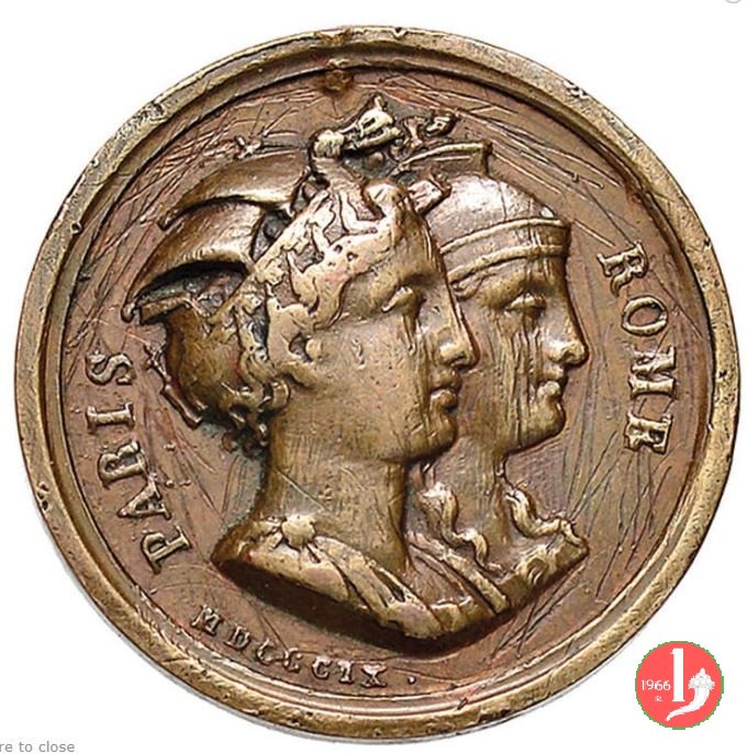 busti accollati a dx delle figure allegoriche di Parigi diademata e con cappello e di Roma elmata