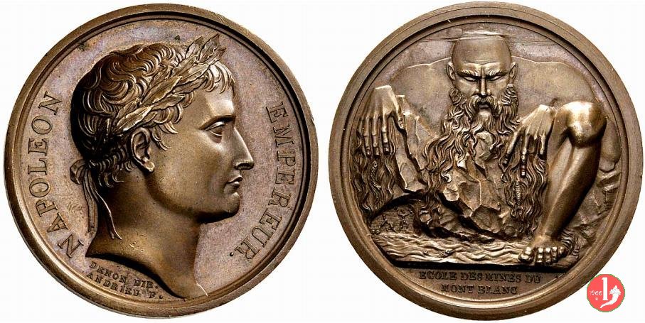 | Medaglia coniata, realizzata nel 1805 a ricordo della Scuola di Mineralogia istitutita sul Monte Bianco. | ||||||