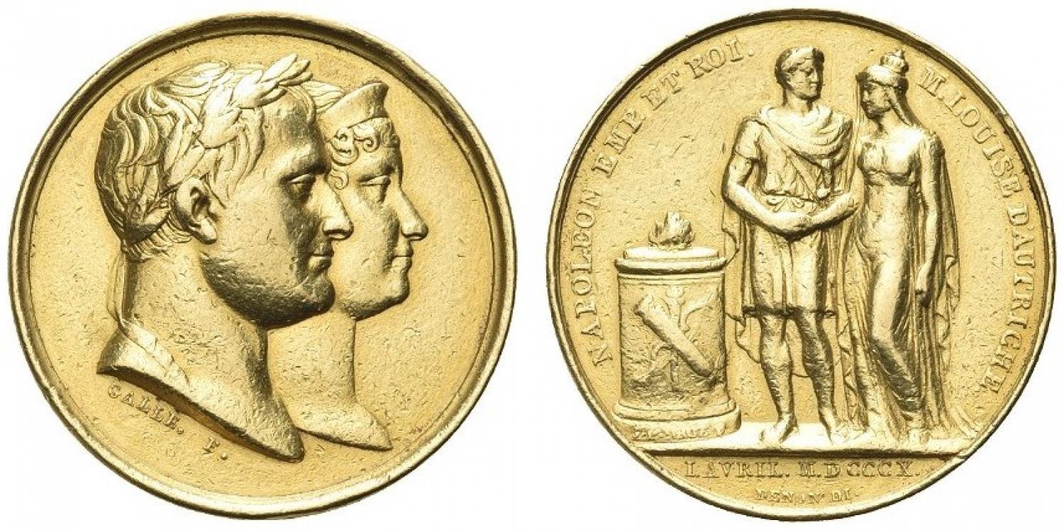 | Medaglia coniata, emessa il 11-02-1810 per ricordare il matrimonio di Napoleone con Maria Luigia d'Austria. | |||||||