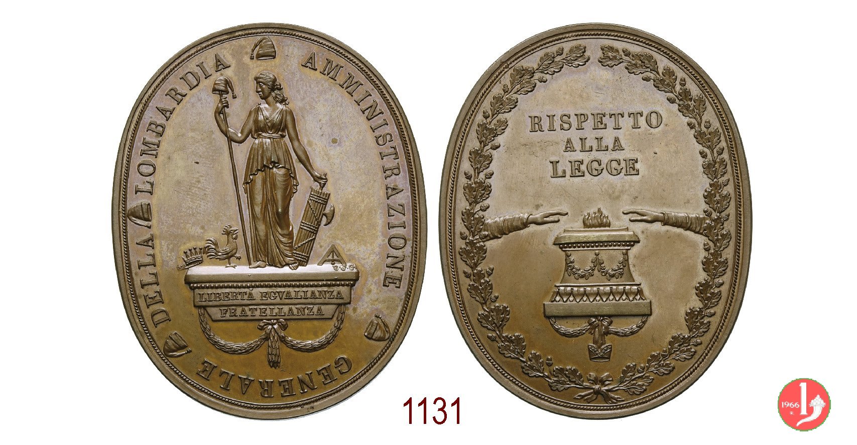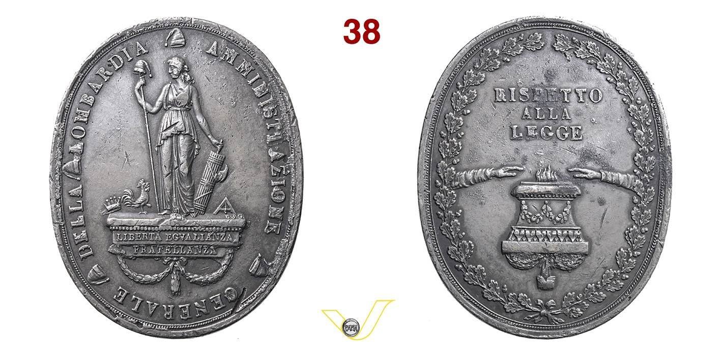 | Medaglia-distintivo coniata senza data, probabilmente realizzata nel 1801 per l'Amministrazione Generale della Lombardia. | |||||||