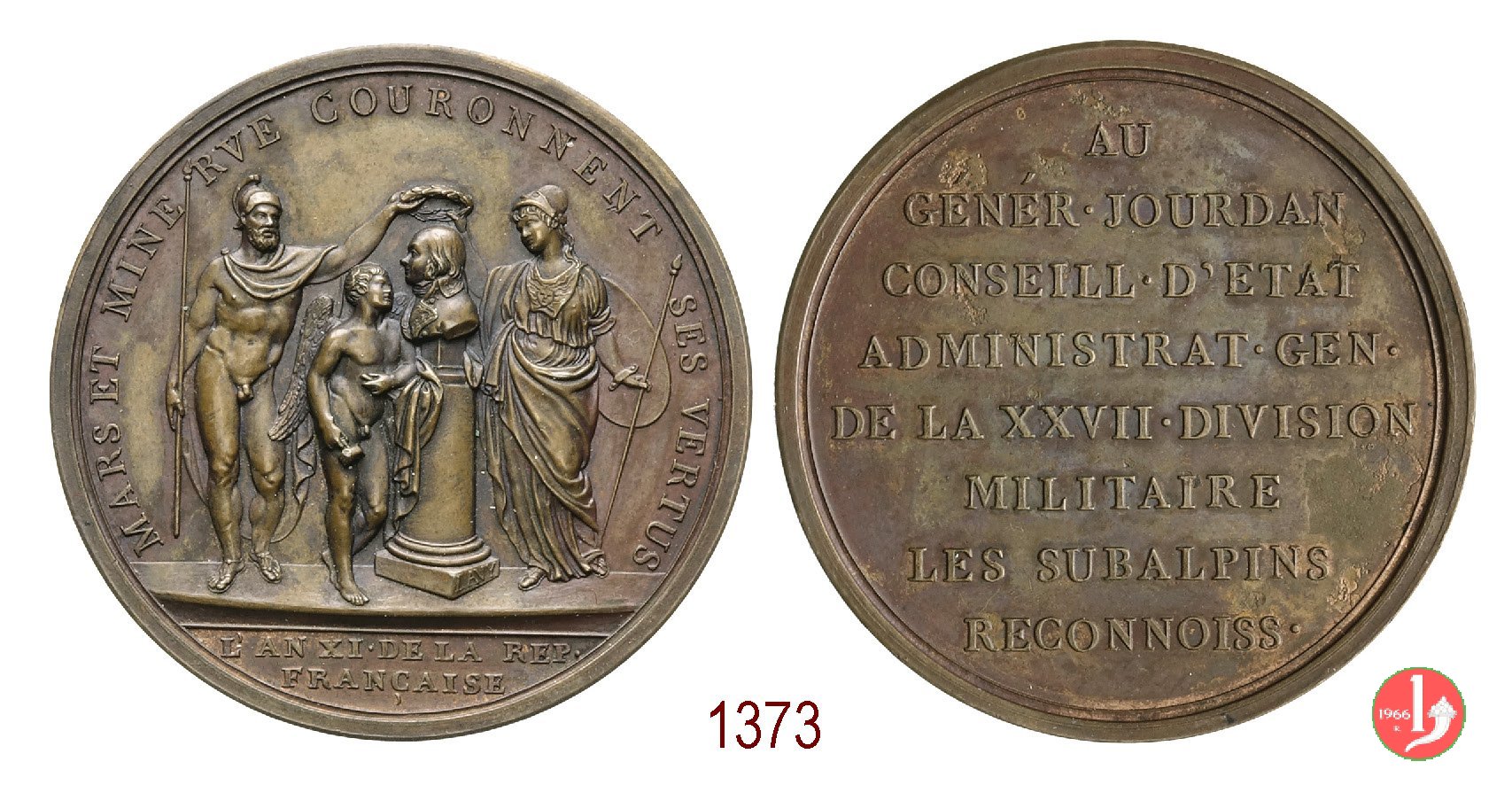 Medaglia coniata, realizzata nel 1802 a ricordo dell'Omaggio di Torino al Generale Jourdan (Ministro Straordinario della Repubblica Francese in Piemonte).