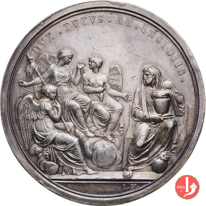 Medaglia coniata, realizzata a ricordo dello scampato attentato a Napoleone la Vigilia di Natale del 1800 a Milano. L'episodio fu provocato da un carro che esplose e causò la morte di 53 persone, nelle cronache dell'epoca fu ricordato con il nome di Macchina Infernale.