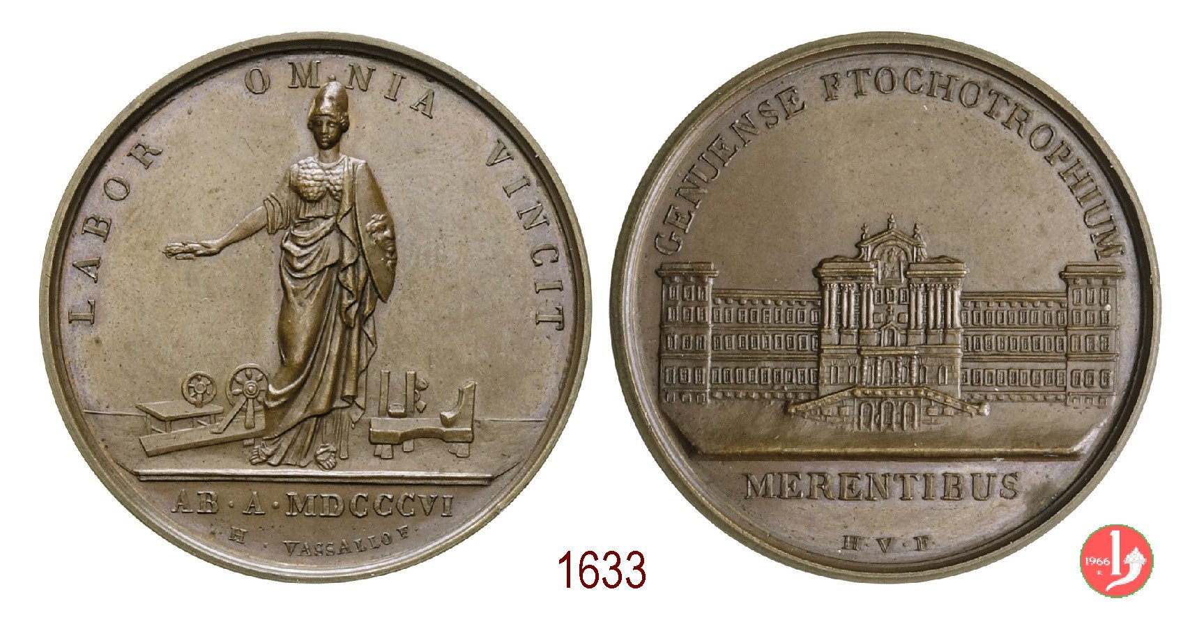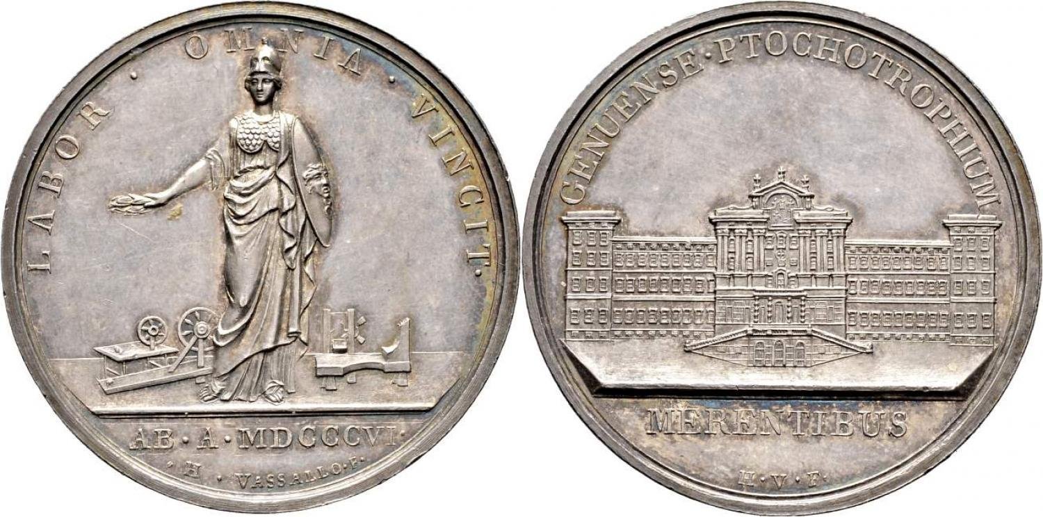 Medaglia coniata, emessa nel 1806 per i Benemerenti dell'Ospedale dei Poveri di Genova.