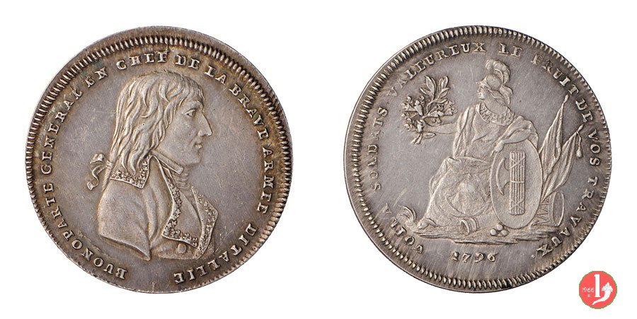 | Medaglia-Gettone coniata realizzata nel 1796, per ricordare la Campagna d'Italia. | |||||