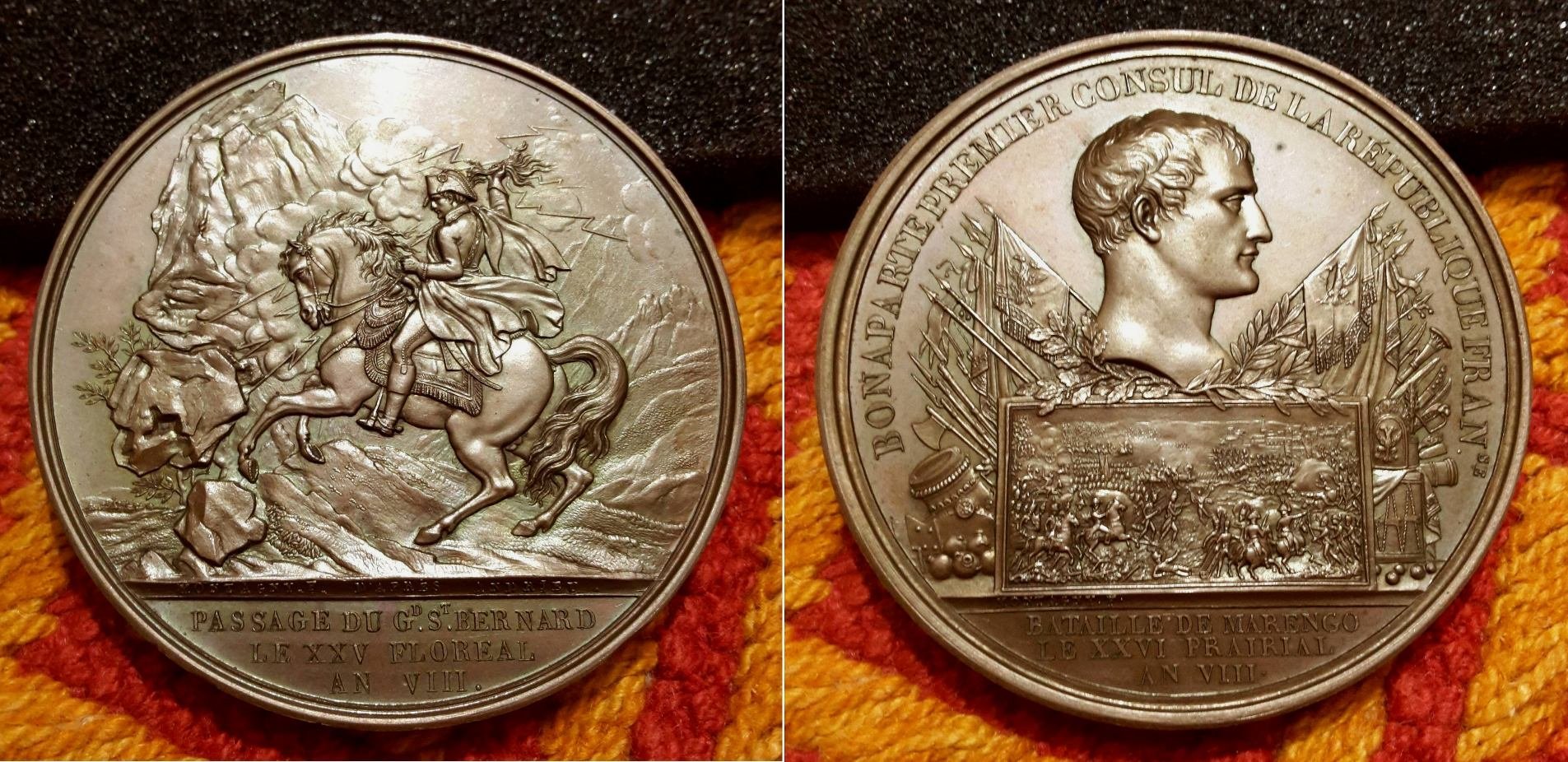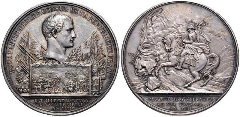 | Medaglia coniata, realizzata nel 1800 per ricordare il passaggio del Gran San Bernardo e la Battaglia di Marengo. | |||||||