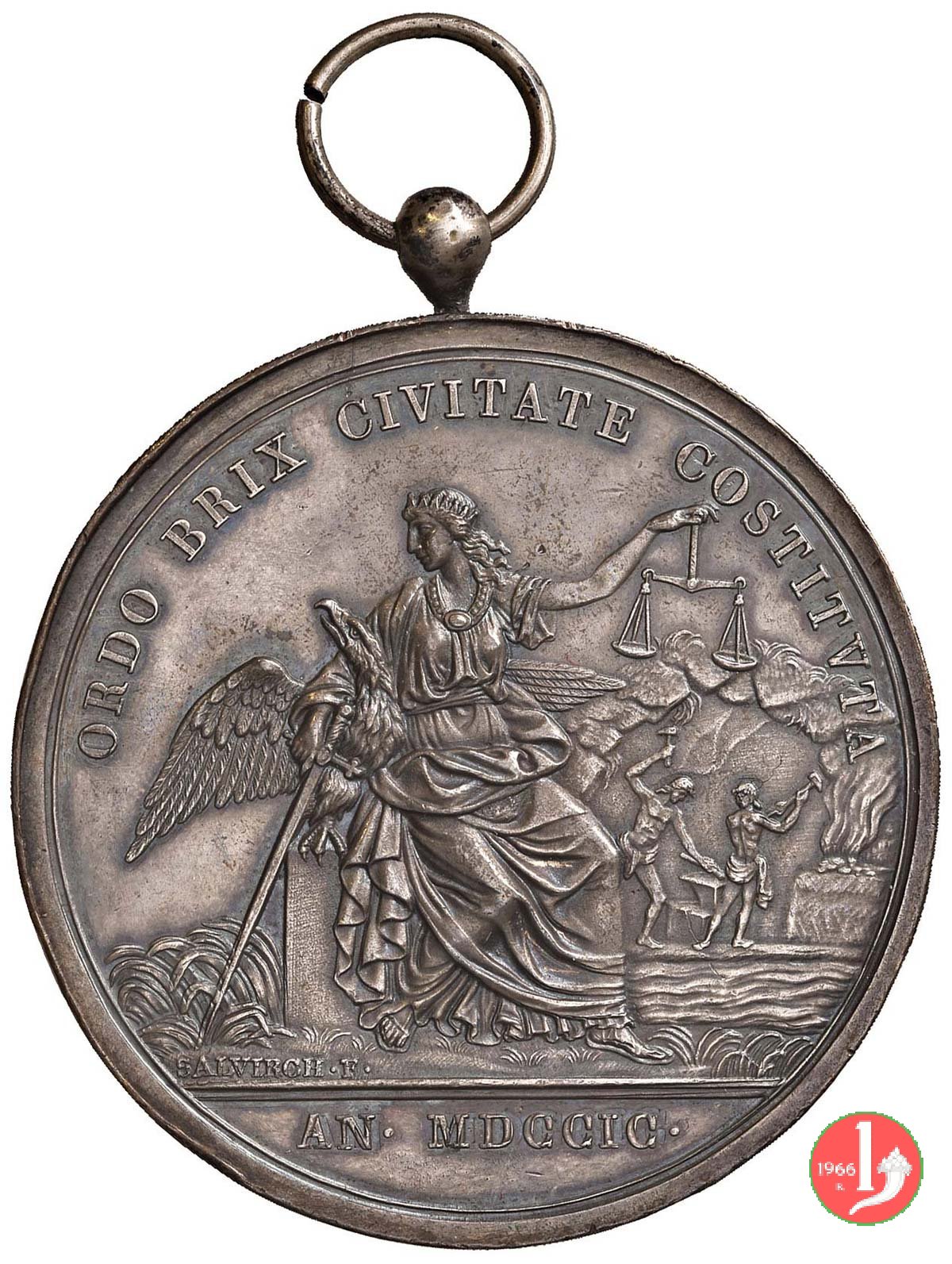 | Medaglia premio coniata, realizzata nel 1799 per ricordare il ristabilimento dell'ordine a Brescia. | |||||||