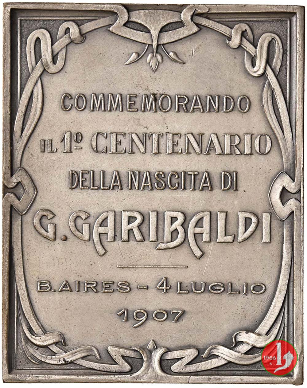 | Placchetta rettangolare coniata, realizzata nel 1907 in Argentina a ricordo del centenario della nascita di Giuseppe Garibaldi. | ||||