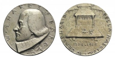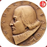 Medaglia coniata, emessa nel 1964 per celebrare il quarto centenario della nascita del poeta e drammaturgo William Shakespeare (1564-1616). Medaglia annuale Johnson del 1964. | ||||||