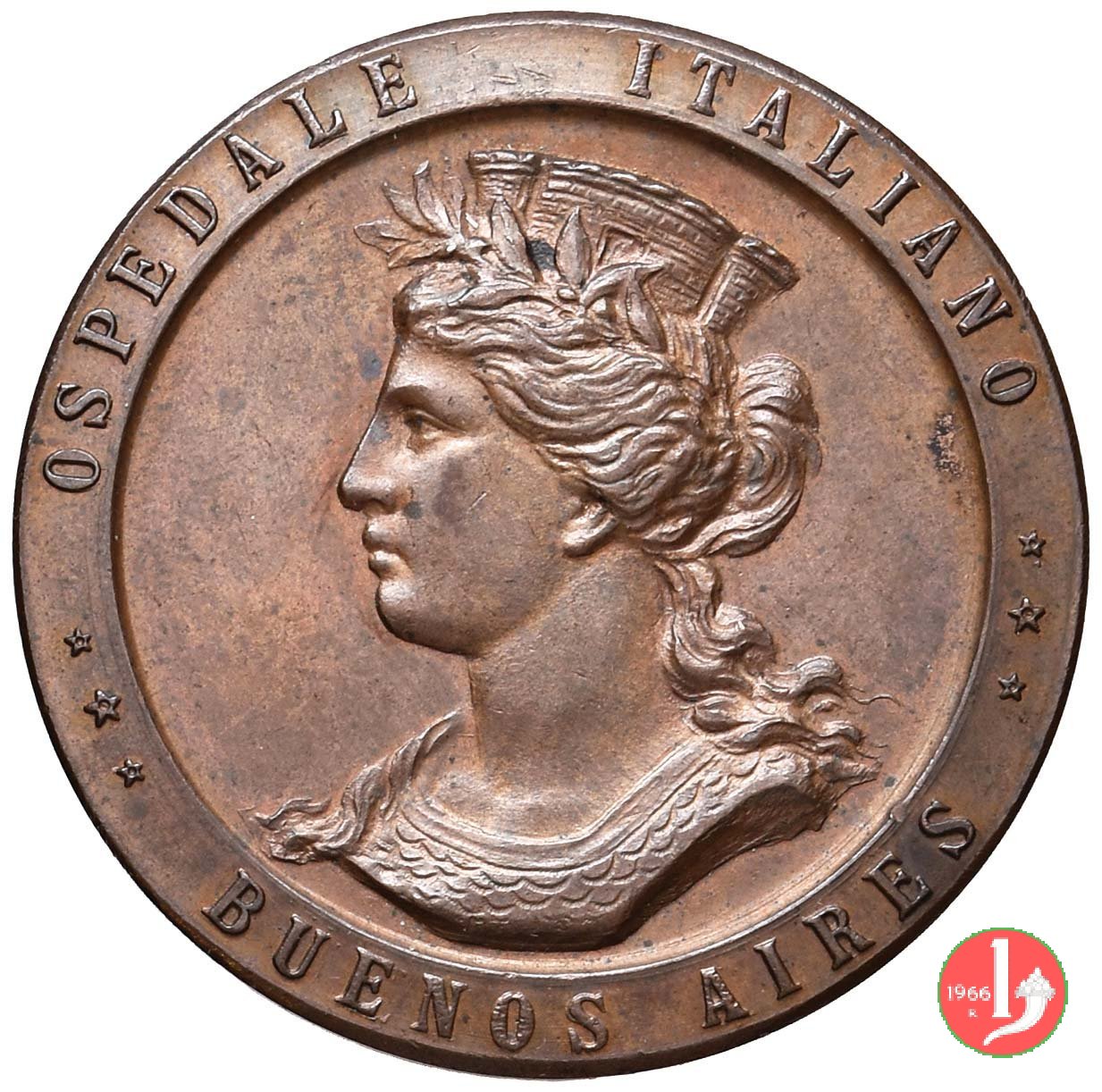 Medaglia coniata, emessa il 22-12-1901 a ricordo dell'inaugurazione del Nuovo Ospedale Italiano a Buenos Aires.