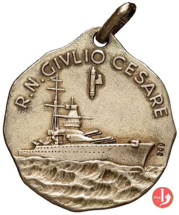 Medaglia coniata, realizzata probabilmente per l'entrata in servizio dopo la ristrutturazione il 01-10-1937, della Regia Nave Corazzata Giulio Cesare, realizzata nei Cantieri Navali di Genova.