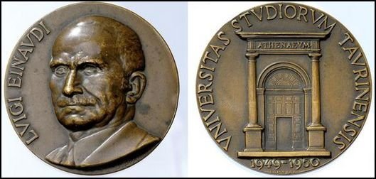 | Medaglia coniata, realizzata nel 1950 dall'Università degli Studi di Torino in omaggio a Luigi Einaudi. | |||||