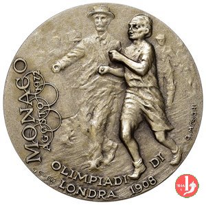 Medaglia coniata, realizzata nel 1972 dallo Stabilimento Stefano Johnson di Milano per il Circolo Filatelico-Numismatico di Carpi nel 1972 in occasione delle Olimpiadi di Monaco, per ricordare e celebrare Dorando Pietri (1885-1942), maratoneta.