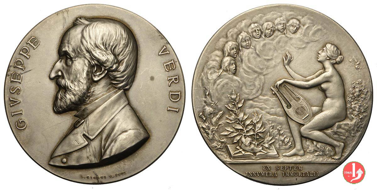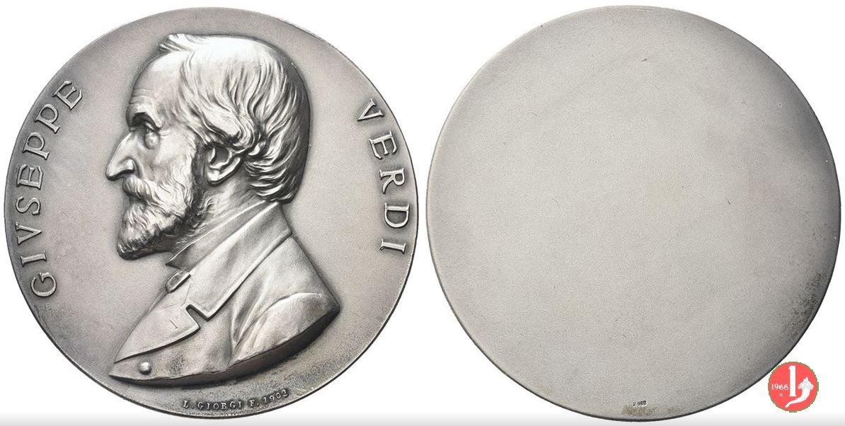 Medaglia coniata, emessa nel 1902 per ricordare il primo anniversario della morte di Giuseppe Verdi in occasione del Concorso speciale Grazioli, indetto in onore Verdi.