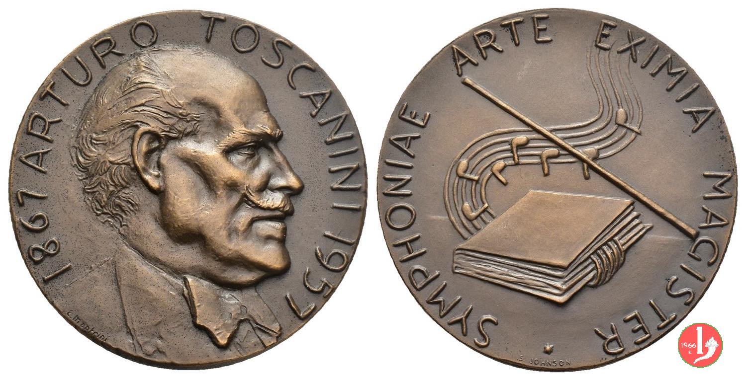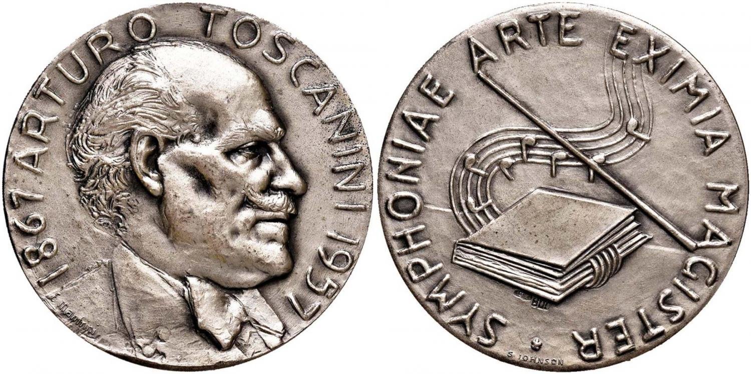 Medaglia coniata, realizzata nel 1957 in omaggio ad Arturo Toscanini (1867-1957) direttore d'orchestra.