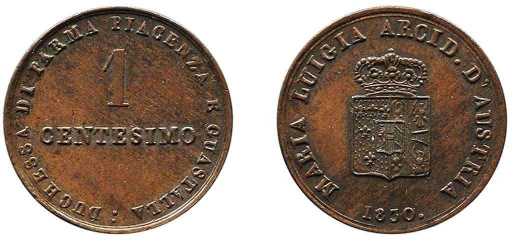 Il Ducato di Parma fu il primo stato preunitario a coniare monete utilizzando il sistema decimale. Queste monete sono state coniate anche in date differenti rispetto alla data presente sulla moneta, presumibilmente negli anni 1830, 1831 e 1832. | |||||||||||||