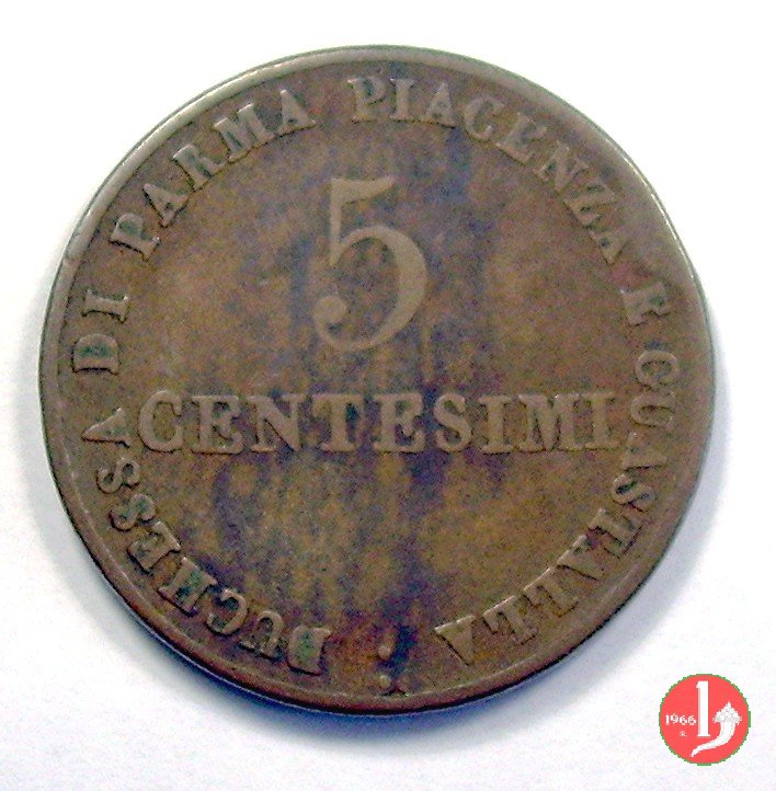 Il Ducato di Parma fu il primo stato preunitario a coniare monete utilizzando il sistema decimale. Queste monete sono state coniate anche in date differenti rispetto alla data presente sulla moneta, presumibilmente negli anni 1830, 1831 e 1832. | |||||||||||||