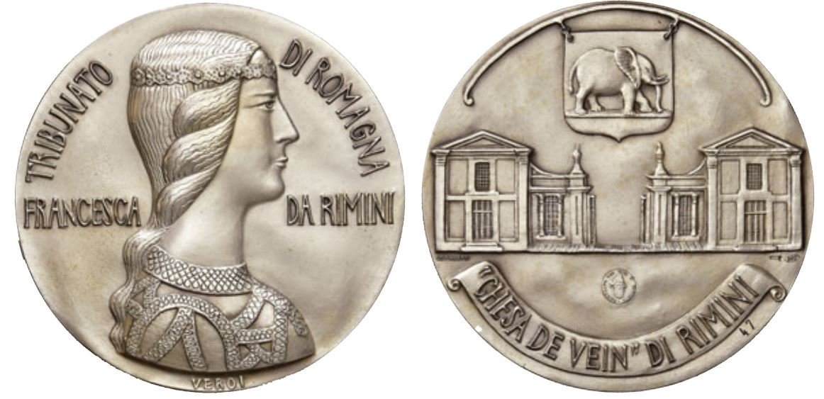 sotto circolarmente ed entro nastro: "CHESA DE VEIN" DI RIMINI