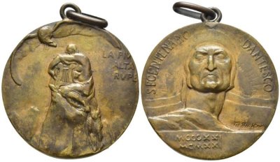 Medaglia coniata, realizzata nel 1921 per ricordare il sesto Centenario dell morte di Dante Alighieri.