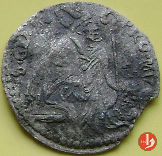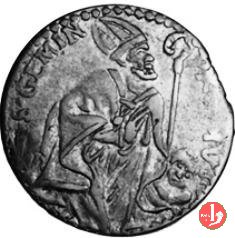 verso: S • GEMIN PRO • MV Il Santo, mitrato e con paludamento, genuflesso a destra, con lo sguardo in alto e le mani giunte in atto di pregare: davanti a lui un angioletto regge il pastorale; dietro il Santo, la città.
