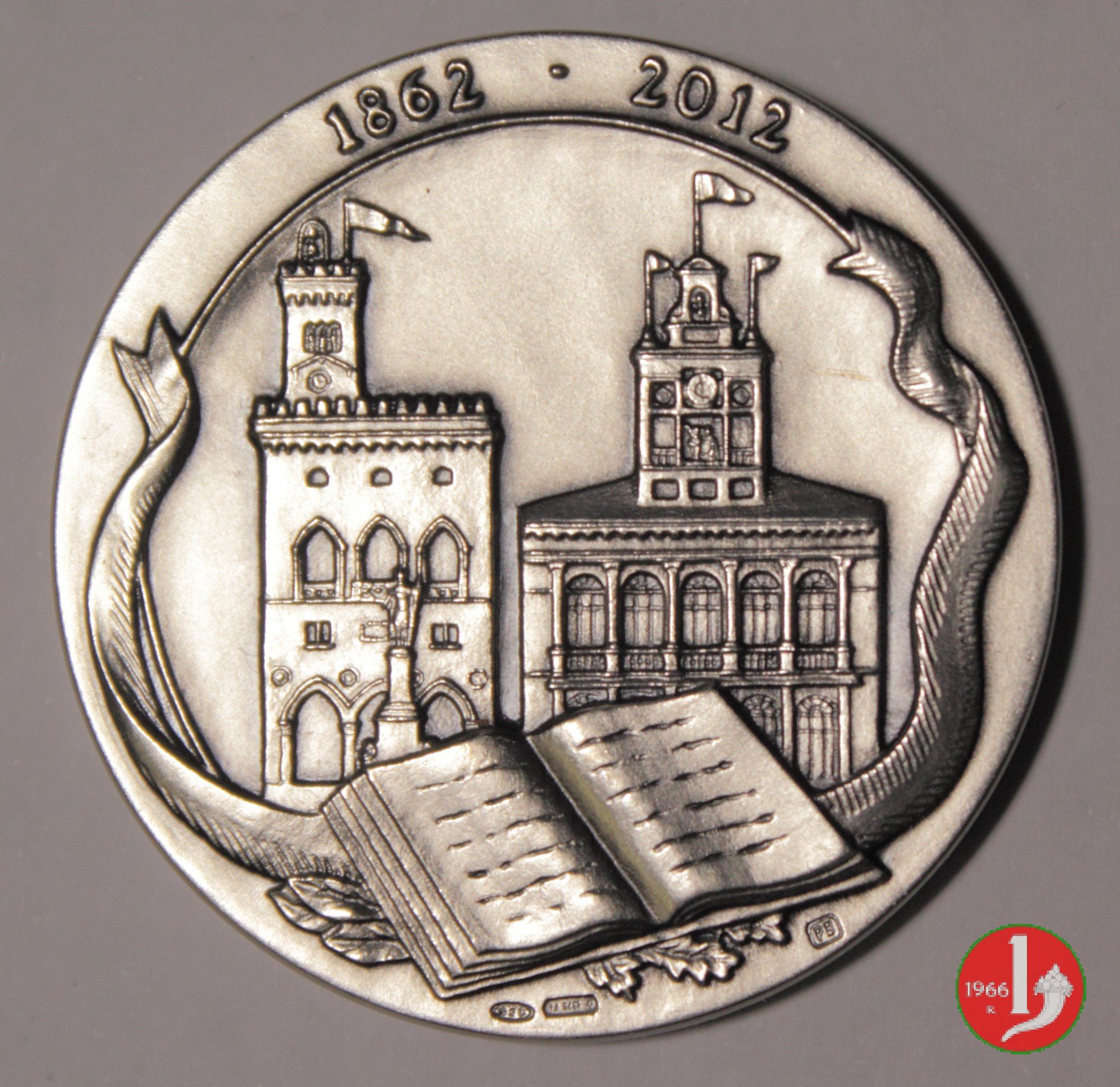 Medaglia ufficiale coniata, emessa il 29-08-2012, per ricordare il centocinquantesimo anniversario della Convenzione Bilaterale Italia-San Marino